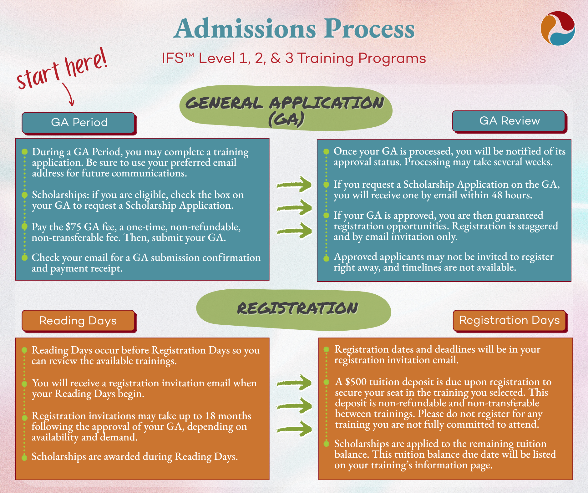 We acknowledge the increasing interest in IFS Trainings and are offering more training opportunities each year to meet this demand. Thank you for your interest in IFS!